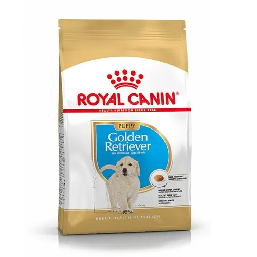 Pienso para Cachorro Royal Canin Golden Retriever Puppy Royal Canin Golden Retriever Junior es un alimento específicamente diseñado para los Cachorro de esta raza hasta los 15 meses de edad. Características: Ayuda a mantener sano el sistema digestivo gracias a elementos como la pulpa de remolacha o las fibras vegetales que además equilibran la flora intestinal. Con aceite de borraja, ideal para mantener una piel y un pelo sanos gracias a los ácidos grasos que aporta. Gracias a su composición específica para sus primeros meses de vida, ayuda a mantener las defensas naturales de tu cachorro. Composición: Proteínas de ave deshidratadas, arroz, maíz, aislado de proteínas vegetales, grasas animales, trigo, fibras vegetales, hidrolizado de proteínas animales, pulpa de remolacha, minerales, aceite de pescado, aceite de soja, fructo-oligosacáridos, semillas e integumentos de psyllium, hidrolizado de levaduras (fuente de manano-oligosacáridos), hidrolizado de crustáceo (fuente de