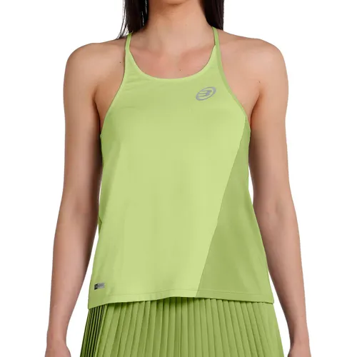 Camiseta Bullpadel Bines Mujer, transpirable Camiseta Bullpadel Bines Mujer de tirantes para mujeres jugadoras de pádel. Camiseta de la colección Padel is my Power de Bullpadel. Esta prenda es una camiseta de tirantes amplia para mujer con un diseño de corte asimétrico en el color de la prenda. Detalle de pequeñas aberturas en la espalda. Confeccionada con tejido técnico Drynamic formado con microfilamentos que eliminan la humedad y aportan transpirabilidad a la prenda. Composición: 90% Poliéster y 10% Elastán con Fancy elastic jersey.