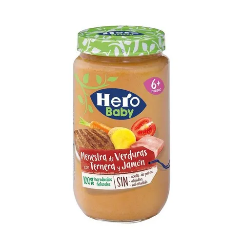 HERO BABY Tarrito de Menestra de verduras con ternera y jamónElaborado con la mejor selección de ingredientes para asegurarle a tu bebé una alimentación natural y nutritiva a partir de los 6 meses...