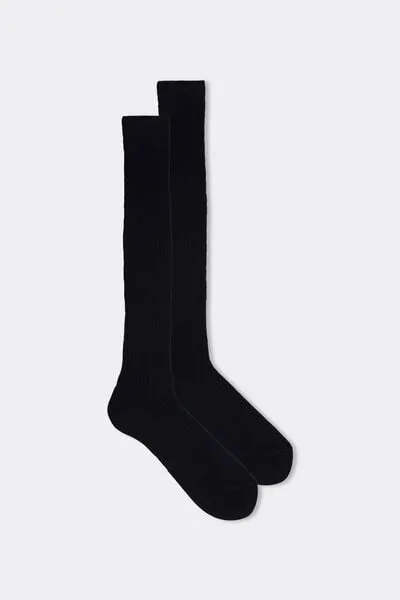 Intimissimi Calcetín ejecutivo de hombre largo de Algodón e Hilo de Escocia con Canalé Hombre Azul Tamaño 40-41