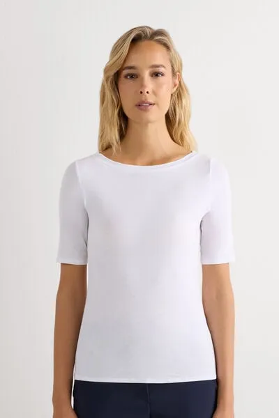 Intimissimi Camiseta con Cuello Barco en Fresh Bamboo Mujer Blanco Tamaño S
