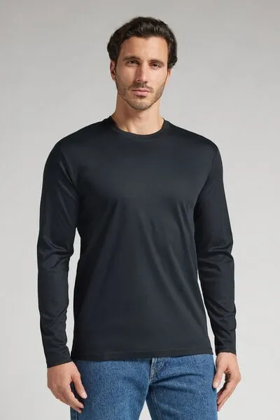 Intimissimi Camiseta de Manga Larga de Algodón Premium Hombre Negro Tamaño L