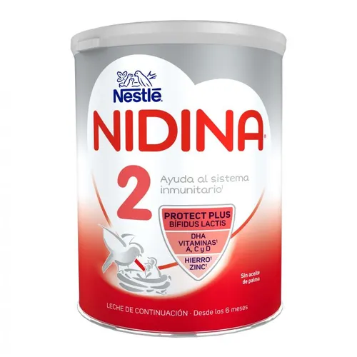 Leche de Continuación Nidina 2 Premium de NestléLeche de continuación en polvo.NIDINA 2 con PROTECT PLUS es una leche infantil sin aceite de palma especialmente desarrollada para tu bebé, con una ...