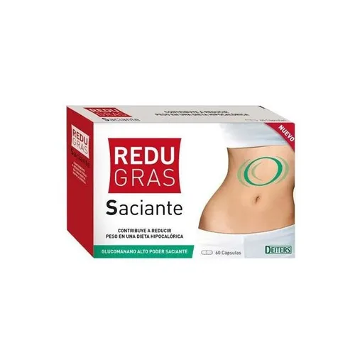 DEITERS Redugras Saciante Su acción saciante te ayuda a reducir el apetito y a evitar picar entre horas, lo que ayudará a un mejor control del peso. Redugras Saciante contiene Glucomanano, una fib...