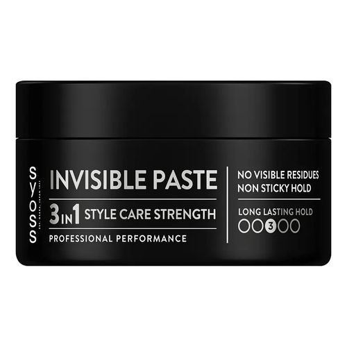 PASTE invisible de SYOSS. Cera capilar invisible de fijación suave para conseguir un acabado totalmente natural. No contiene alcohol etílico ni siliconas. No deja residuos.